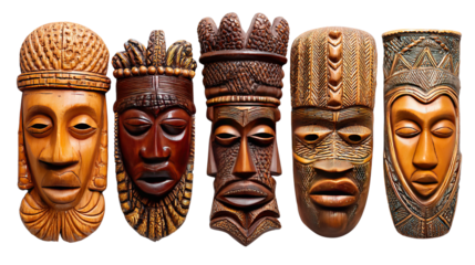 Traditional Balinese carved figures isolated on transparent background