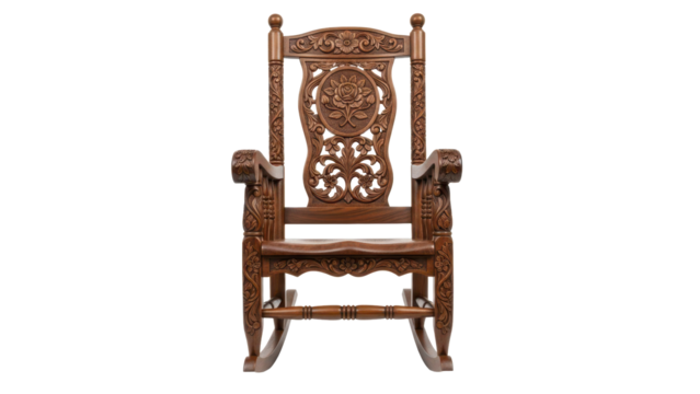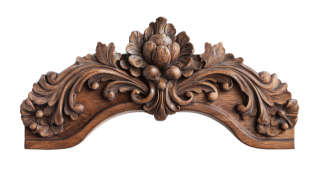 Intricate wooden carving with floral patterns isolated on transparent background