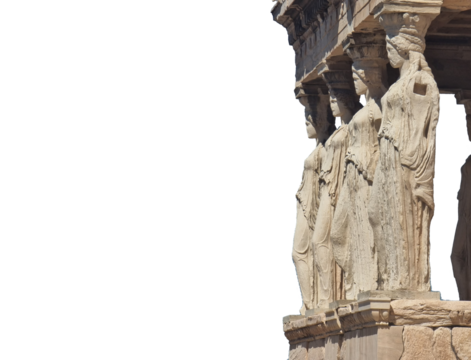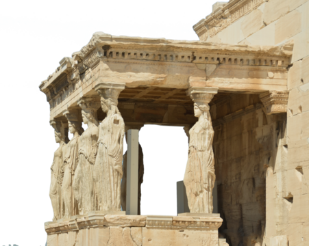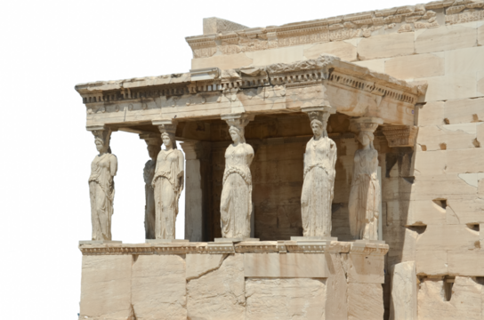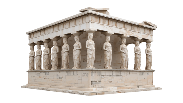 Erechtheion temple ancient architectural marvel with caryatid statues isolated on transparent