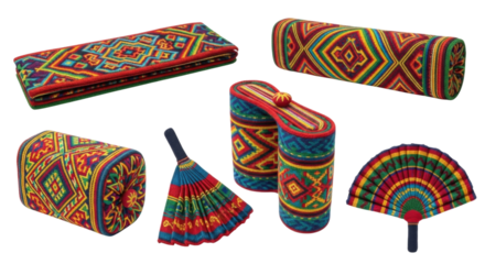 Collection of embroidered accessories transparent background cutout png