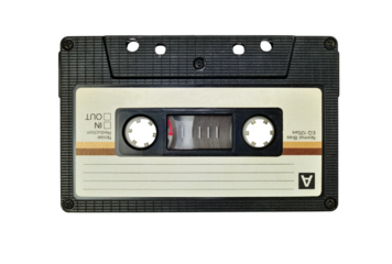 Cassette tape isolated on transparent background, PNG. Retro music sound