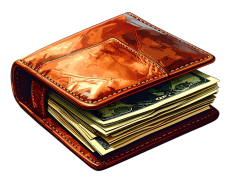 Treasure Chest Overflowing with Cash and Jewels Isolate on Transparent Background, cutout, png