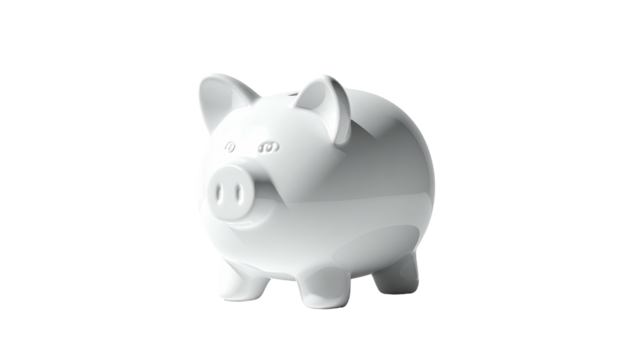 Pink piggy bank with gold coin isolated PNG, savings and investment concept for financial planning and wealth management