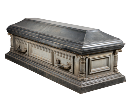 Antique coffin ornate wood isolated on transparency background vintage funeral casket decorative panel historical burial solemn elegant detailed craftsmanship