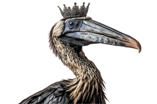 Majestic Crowned Hornbill Portrait Against Black Background
