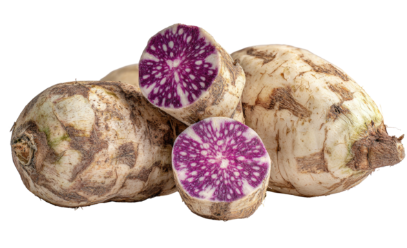 Whole and Sliced Cassava Root Showcasing Natural Textures and Colors