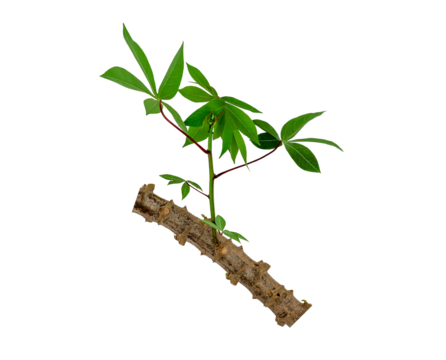 Fresh cassava root with leaves, sliced for cooking and healthy eating