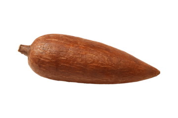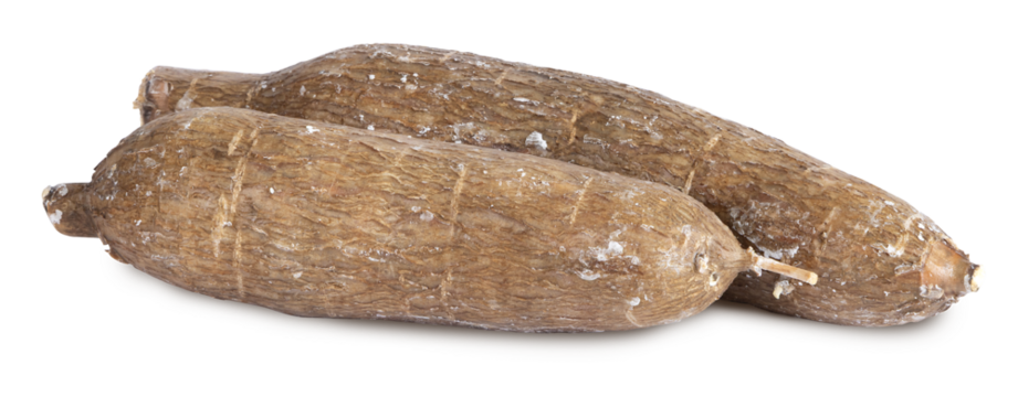 A single raw cassava root, a tropical tuber used for cooking and flour. Isolated on Transparent Background