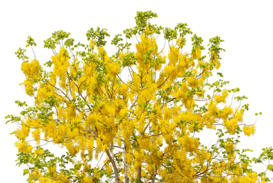 Cassia fistula flowers isoleted transparent background.Golden shower tree plant object element