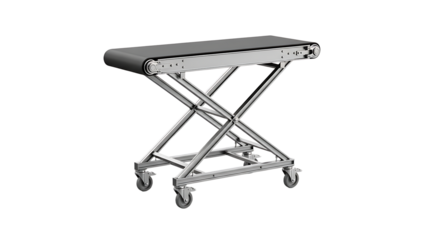 Detailed 3D Render of a Mobile Conveyor Belt Table with Scissor Lift Design