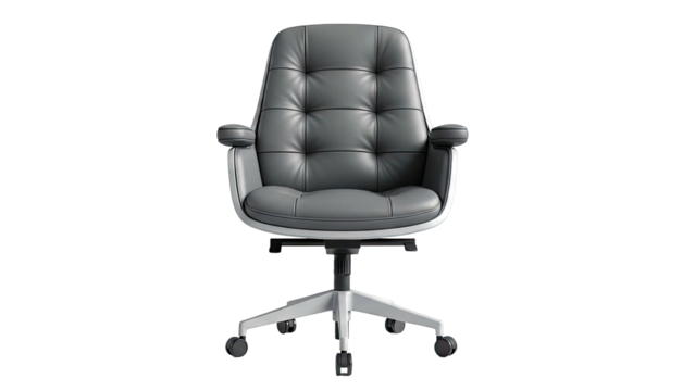 Sleek white leather office chair with padded high back, armrests, and a five-star base on casters