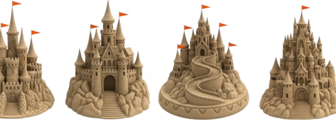 Intricate sandcastle fortress transparent background cutout png