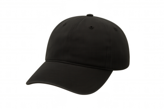 Black baseball cap, customizable sportswear, fashion accessory, casual headwear for branding or uniform design