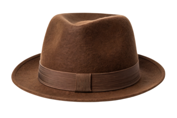 Brown felt fedora hat with dark brown ribbon band, classic style for fashion, adventure, or detective themes