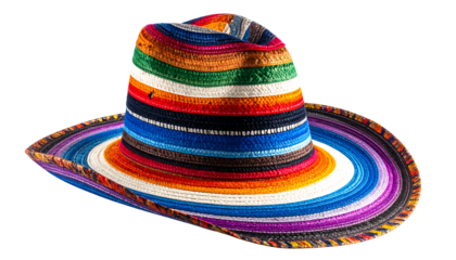 A vibrant, striped fedora hat with multiple colorful bands, isolated on black