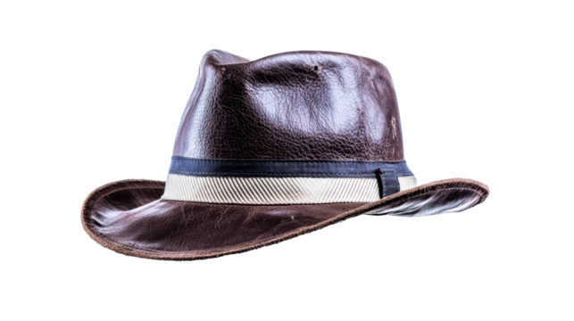 Stylish black fedora hat designed for casual and formal settings isolated on transparent background
