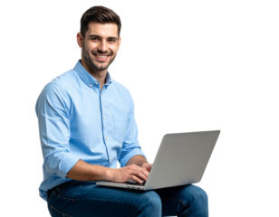 Casual Young Man Working on Laptop, isolated on a transparent background