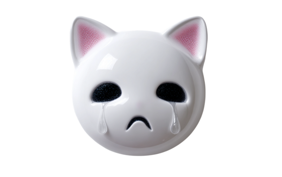 Adorable crying cat emoji design showing tiny tear drops symbolizing sadness compassion and delicate emotion isolated on transparent background PNG