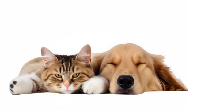 Cute cartoon cats hugging with heartfelt text on transparent background