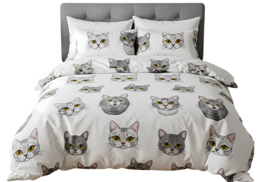 Elegant CatThemed Bedding Set A Chic and Comfortable Sleep Sanctuary isolated on transparent background