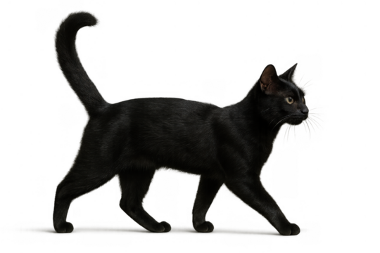 Stylized black cat standing upright with whimsical white accents