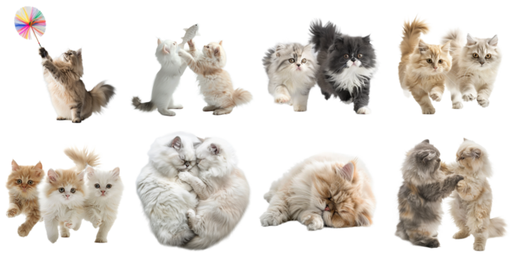 Whimsical cat in pierrot costume with sparkling stars, transparent background