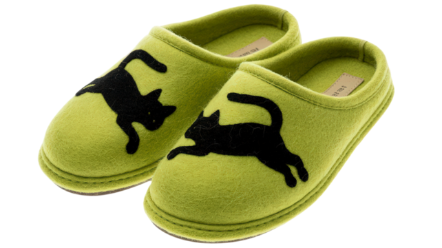 Cozy Green Slippers with Black Cat Design Perfect for Indoor Comfort and Relaxation Ideal for Loungewear and Casual Footwear Featuring Unique Style and Comfortable Fit