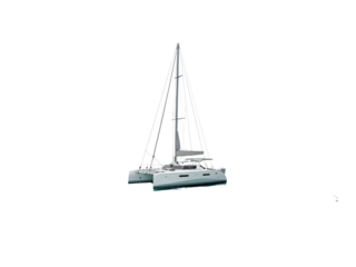 Sailing catamaran on the open sea, a symbol of luxury and maritime adventures against isolated