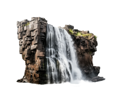 waterfall with rocks ,nature element, flowing water , isolated on a transparent background. PNG, cutout, or clipping path.