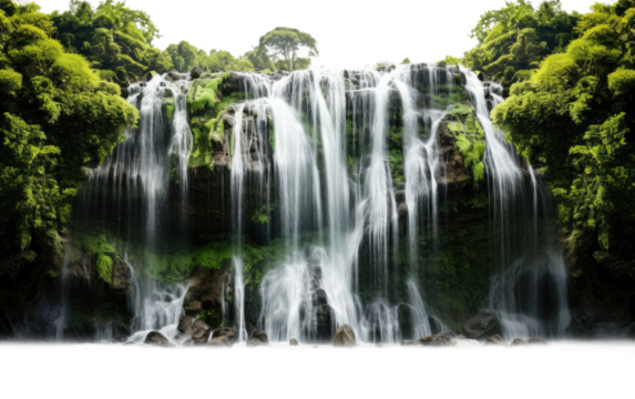 The Majestic Waterfall Calming Presence in a Verdant Forest Haven on a White or Clear Surface PNG Transparent Background