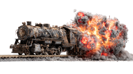 A powerful, fiery explosion billows immense dark smoke into a mushroom cloud, showcasing destructive energy on a transparent transparent background. background removed