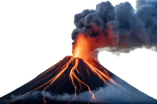 Explosive Nuclear Explosion with Bright Fireball and Dark Smoke Clouds in Transparent Background