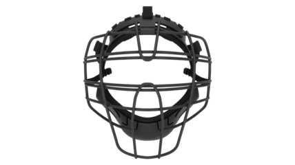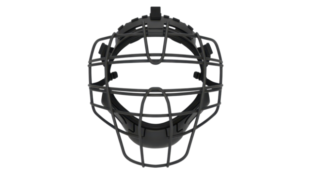 Catcher's helmet featuring a teal finish and a protective face mask, isolated on a transparent background