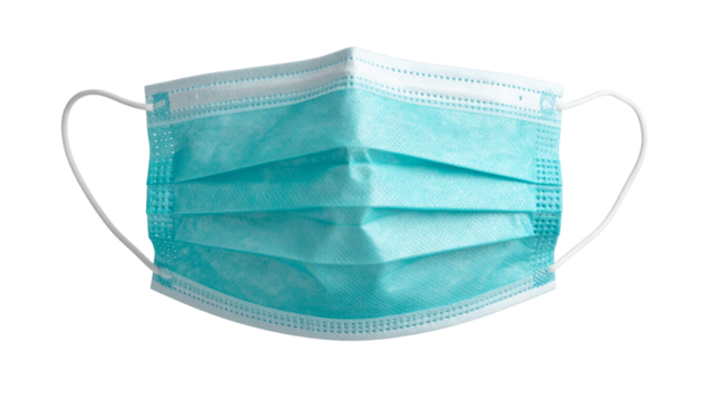 Surgical mask isolated on transparent background to prevent spread of viruses