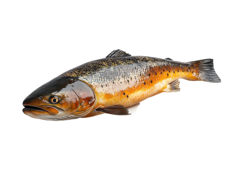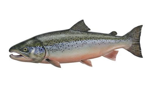 Realistic depiction of a salmon fish swimming in clear water, showcasing its vibrant colors and natural habitat