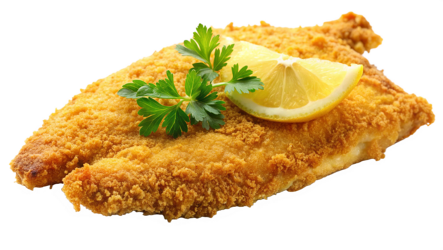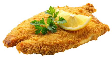 Crispy Fried Catfish Filet with Delicious Cornmeal Crust Isolate on Transparent Background, cutout, png