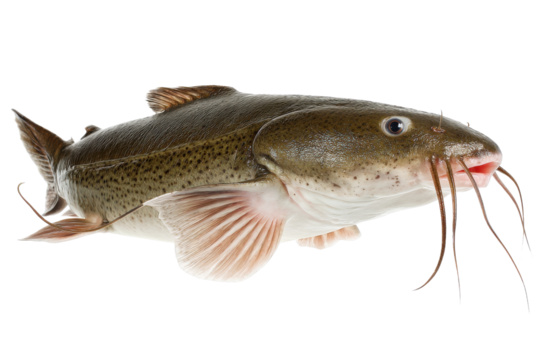 Freshly caught channel catfish on a transparent background vector, showcasing its distinctive barbels and mottled skin, ideal for culinary or wildlife illustrations