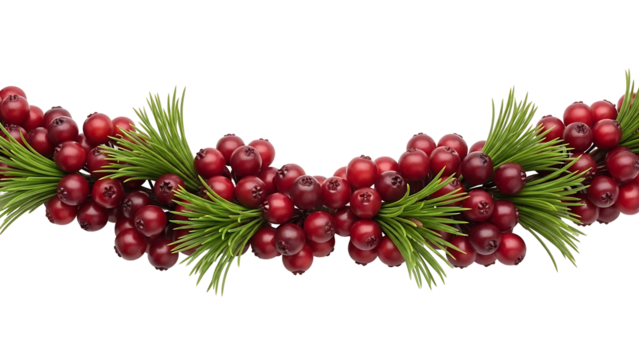 illustration of pine tree branches with lush green needles and brown trunks, adorned with a vibrant red bow and flowing ribbons, in  ong Transparent