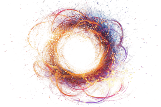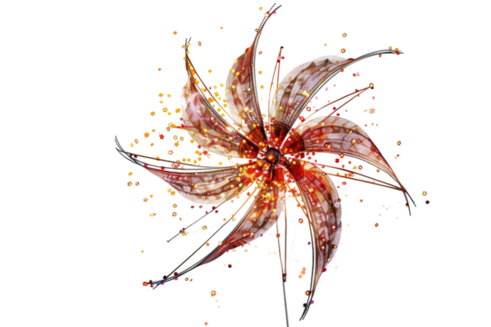 A fiery show of Catherine wheels spinning and sparkling when ignited isolated on transparent background