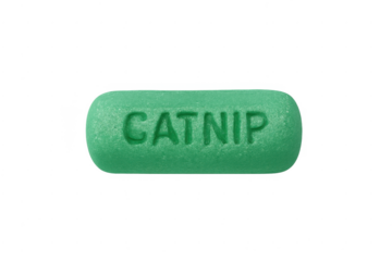 Green catnip pill for pet care on transparent background