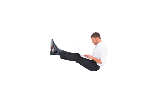 Caucasian Businessman Using Laptop On Transparent Background PNG Images