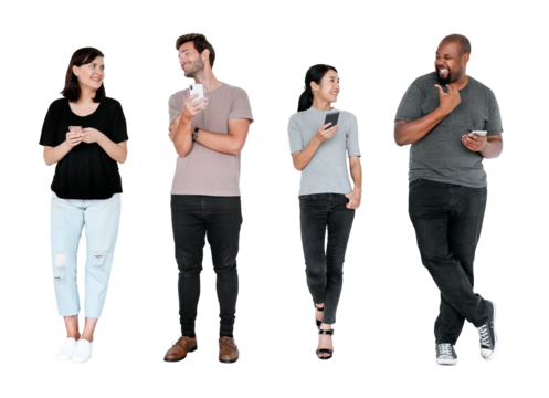 Digital png photo of caucasian male handing using smartphone on transparent background