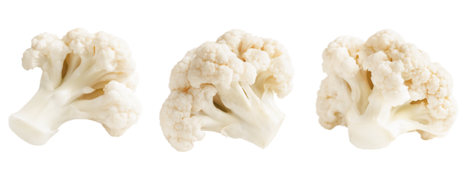 Fresh cauliflower head with green leaves, perfect for healthy eating and vegetarian recipes isolated on transparent background