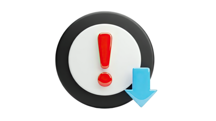 Exclamation Mark Warning Icon with Down Arrow