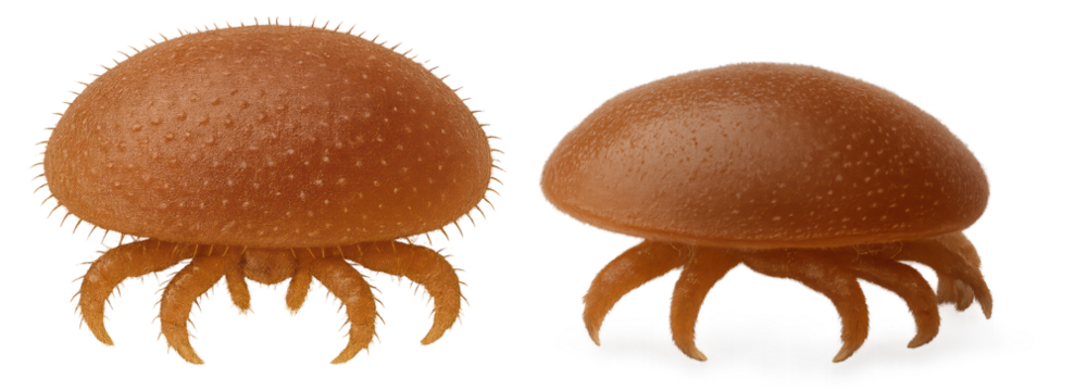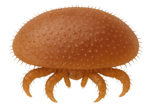 Varroa destructor, a parasitic mite, infesting honey bees, contributing to colony collapse disorder, isolated on transparent background. Side and front view