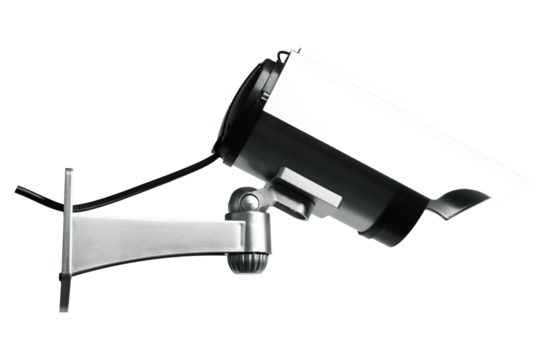 Surveillance CCTV camera isolated on white background. Safety security technology and innovative police criminal alarm protection video and sound voice record equipment surveillance system concept.