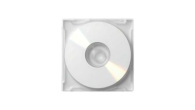 Transparent CD jewel case with disc inside isolated PNG, compact disc storage container for music and data archiving on transparent background