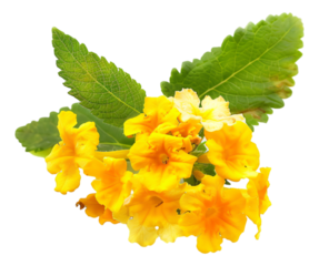 Celandine with yellow flowers and green leaves. Isolated on transparent background.