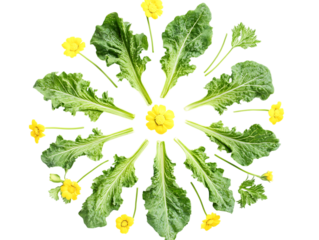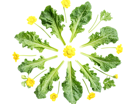 Firefly_Mustard Plant with Leaves and Yellow Flowers Isolated on White Background_