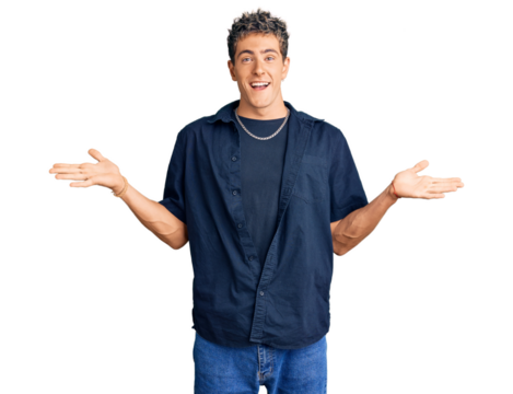 Young handsome man wearing casual clothes celebrating victory with happy smile and winner expression with raised hands